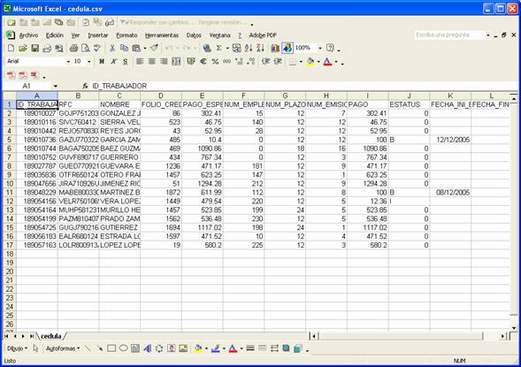 Aquí puede manipular la información, guardar el archivo y/o cerrar la ventana.