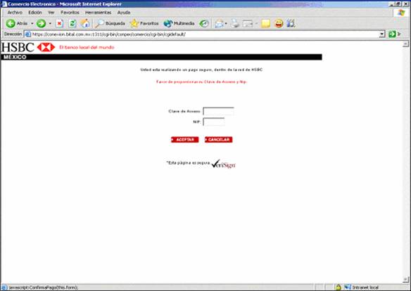 Se hará la conexión al banco seleccionado (se muestra como ejemplo el portal de HSBC).