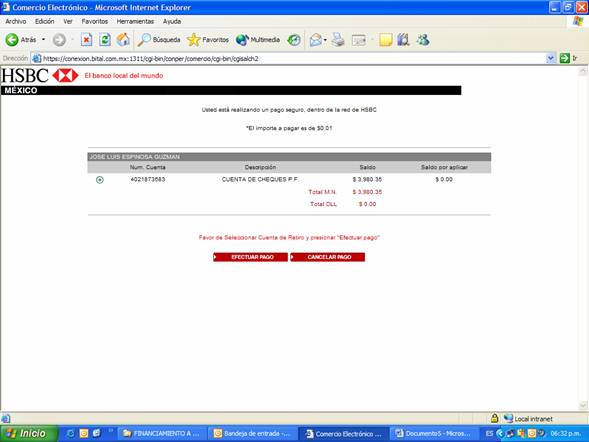 Se selecciona la cuenta de retiro y se efectúa el pago.